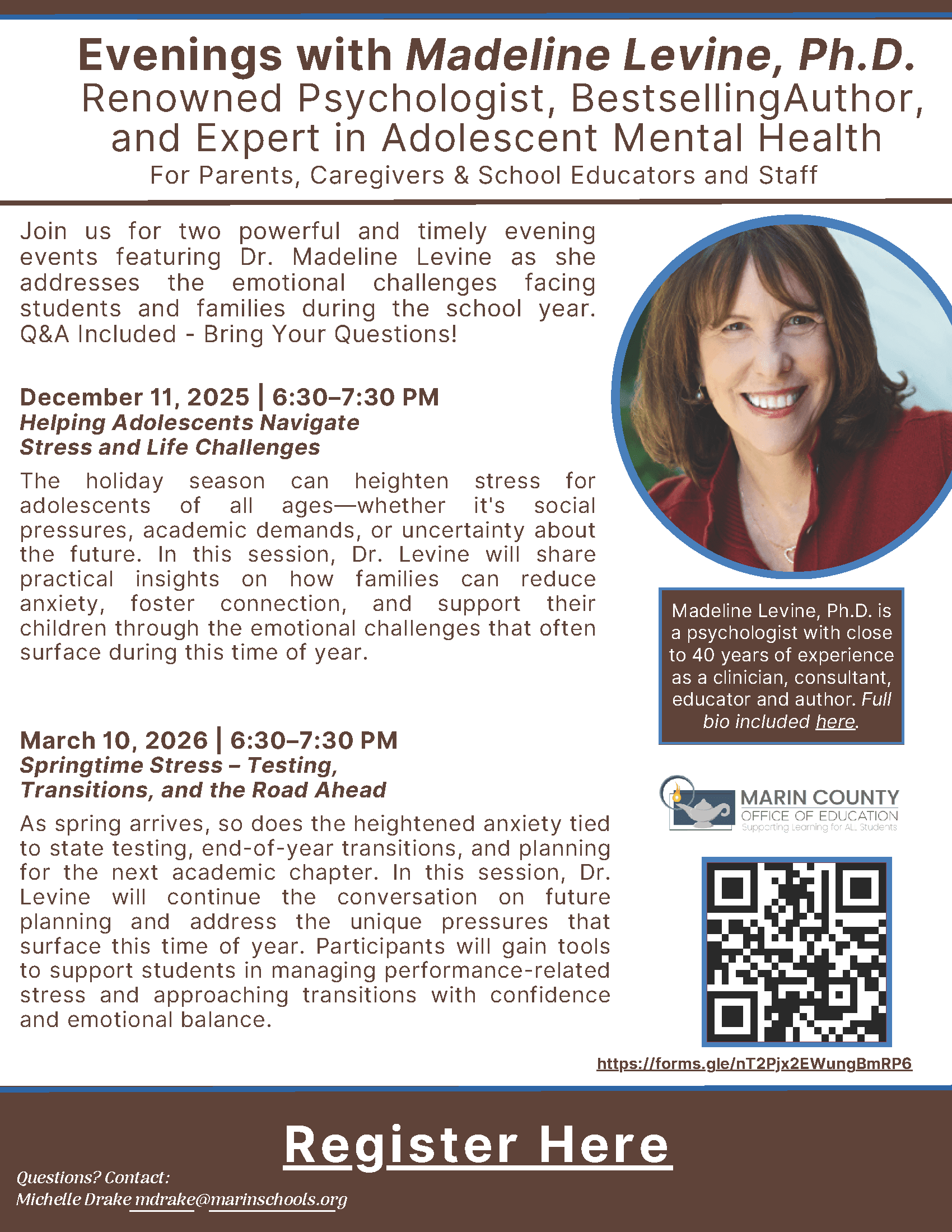 The holiday season can heighten adolescents of all ages-whether it's social pressures, academic demands, or uncertainty about the future. In this session, Dr. Levine will share practical insights on how families can reduce anxiety, foster connection, and support their children through the emotional challenges that often surface during this time of year.